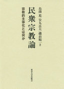 内容:オウム真理教事件、そして東日本大震災との遭遇 磯前順一著. 謎めいた他者と宗教的主体化 磯前順一著. 日本思想史における宗教史研究の意義 安丸良夫述. 安丸良夫との対話 教学の「思想化」について 金光教東京出張所著 安丸良夫述. 生神思想論 島薗進著. 金光教学と人間教祖論 島薗進著. 金神・厄年・精霊 島薗進著. 宗教の近代化 島薗進著. 民族宗教の構造的変動と新宗教 島薗進著. 初期新宗教における普遍主義 島薗進著. 民衆宗教発生論の現在 島薗進著