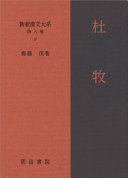 新釈漢文大系、詩人編。新しい時代のうねりの只中で、新たによみがえる漢詩。江南の風景を好んで詠い、酒を愛した杜牧。格調と華麗さとを併せ持つその詩は、唐詩の正統を今に伝える。