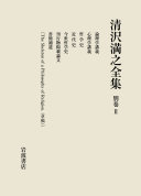2003年の『清沢満之全集』完結後に、新たに発見された講義録、著述、書簡などを別巻二冊にまとめる。本巻には、住田智見筆記の講義録「論理学講義」「心理学講義」や、全集未収録の論文及び書簡、『宗教哲学骸骨』の英文自筆草稿を収録。