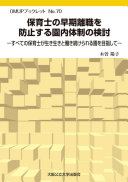 内容:保育士の早期離職に関する先行研究からみる現状と課題. 保育士の早期離職の実態とそれに対する効果的取り組み. 早期離職を防ぐ園内体制モデルの検討. すべての保育士が生き生きと働き続けられる園に向けて