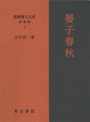 思想・歴史・詩・文章にわたる中国重要古典を収めた新釈漢文大系補遺編第5巻。春秋時代、管仲と並ぶ斉の名宰相・晏嬰の言行録『晏子春秋』全8巻を収める。原典全文・訓読・訳・注で構成する。